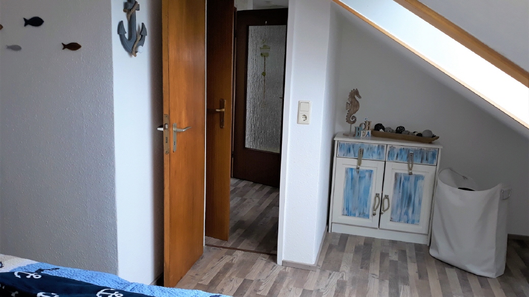 Eine bezaubernde Ferienwohnung im Dachgeschoss, in der zweiten Etage, bietet eine schöne Aussicht zum Garten, den Ort und der Ostsee.